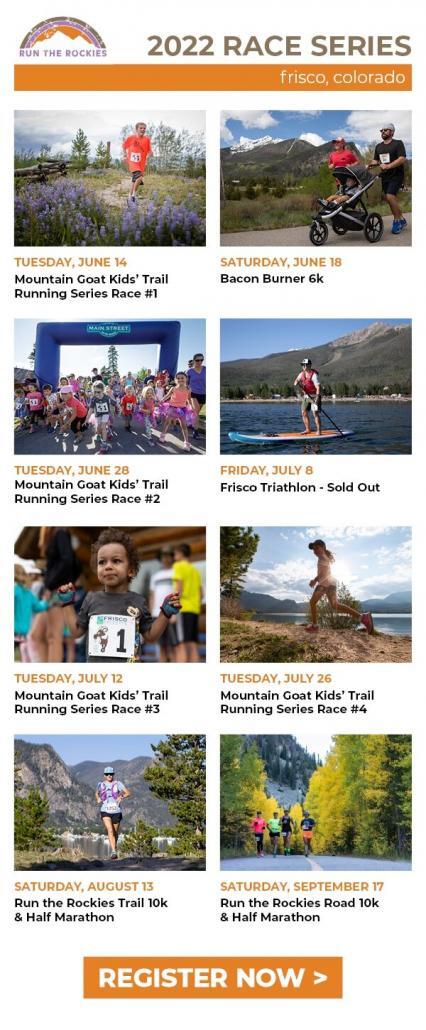 Registration is open for the Frisco Summer Race Series. Register at: https://www.townoffrisco.com/events-category/athletic-events. From the Run the Rockies trail 10K and Half marathon to the Mountain Goat Kids’ Trail Running Series, there is something for everyone!