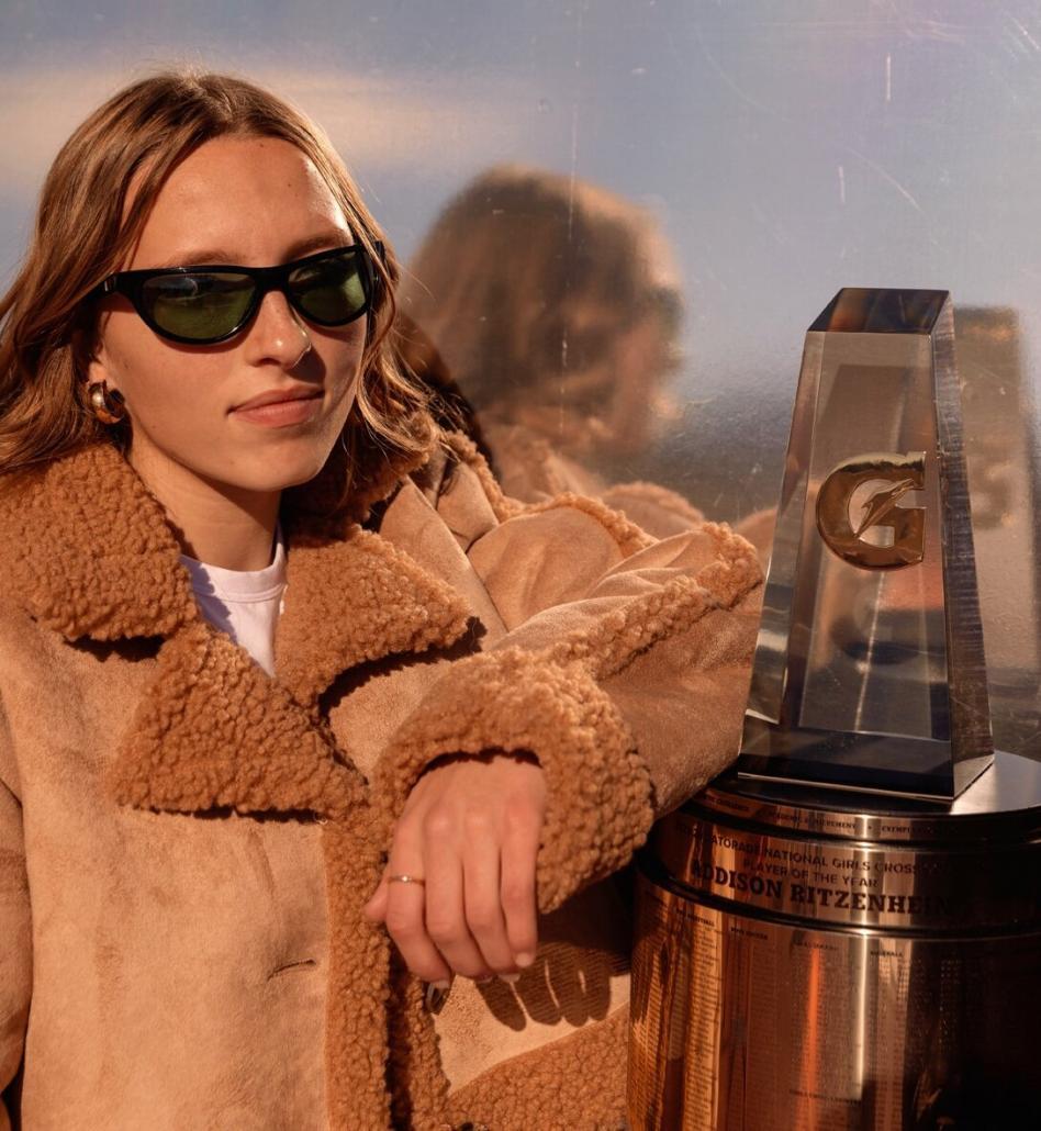 NCAA champion and four-time Gatorade National Player of the Year Katelyn Tuohy surprised Ritzenhein with the trophy at school. Ritzenhein was pulled out of class for what she thought was an interview about winning Colorado Gatorade Player of the Year and was then surprised on the outdoor track by Tuohy, her teammates and family. Notably, Ritzenhein is the daughter of Olympic distance runner Dathan Ritzenhein, who won Michigan Gatorade Player of the Year honors in 1999-00 and 2000-01. Afterwards, Ritzenhein got a taste of the pro athlete experience with a styling session, photoshoot and media interviews.